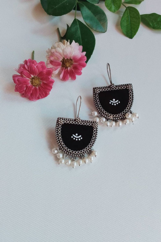 Aatmika (Black & White) - Premium Quality Oxidised Danglers (Hand Painted)