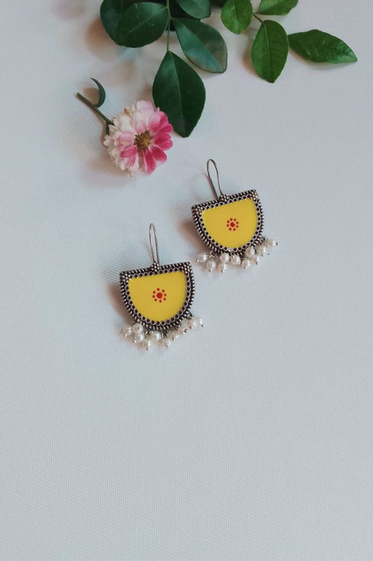 Aatmika (Yellow & Red) - Premium Quality Oxidised Danglers (Hand Painted)