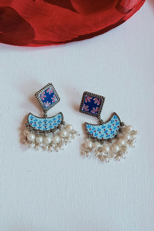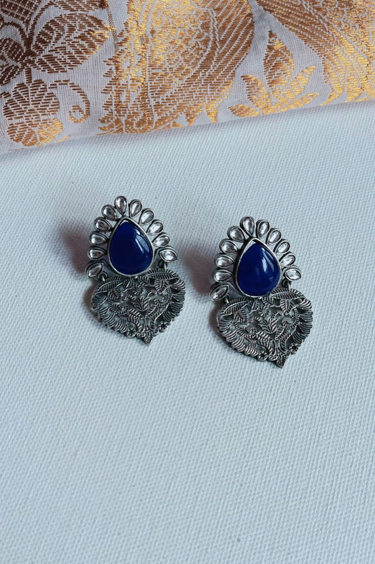 Kusuma (Navy Blue & White) - Premium Quality Oxidised Danglers
