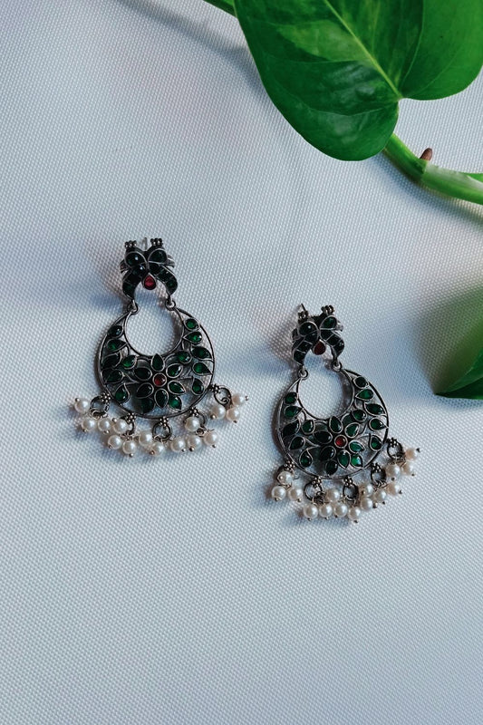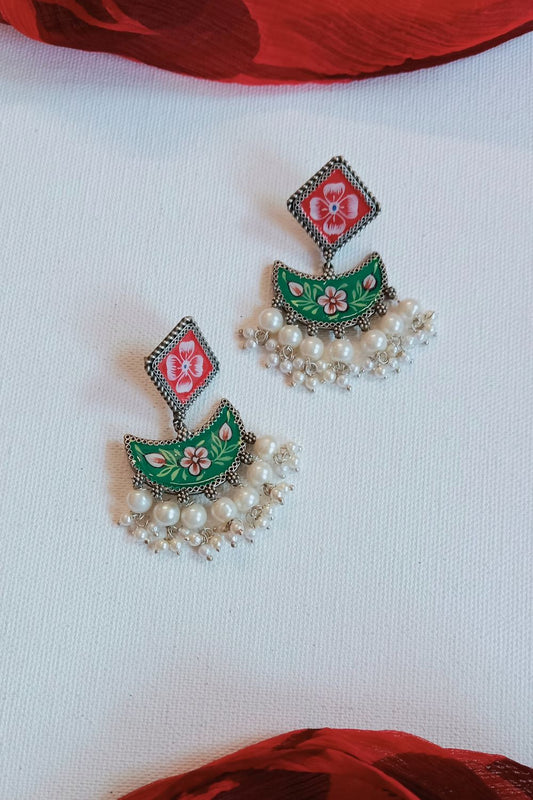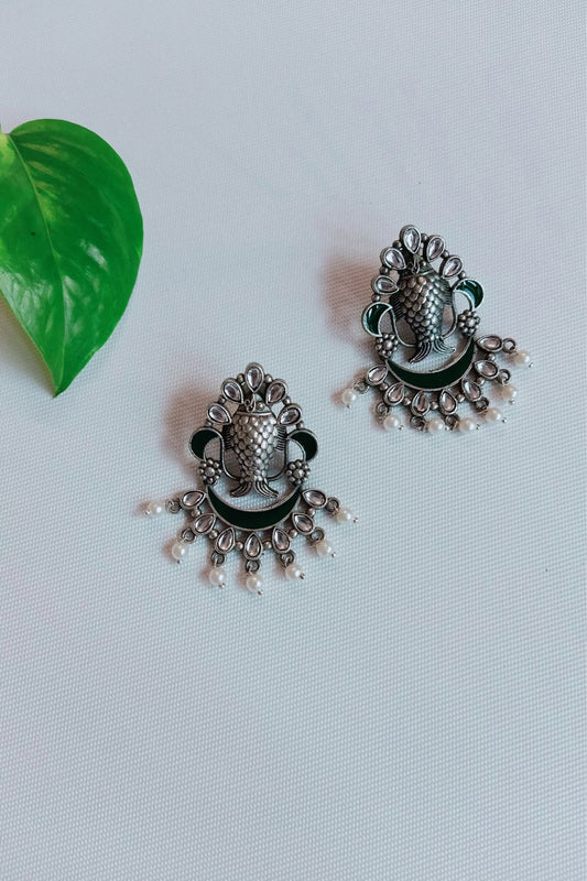 Meenakshi (Green) - Premium Quality Oxidised Chandbali (Hand Painted)