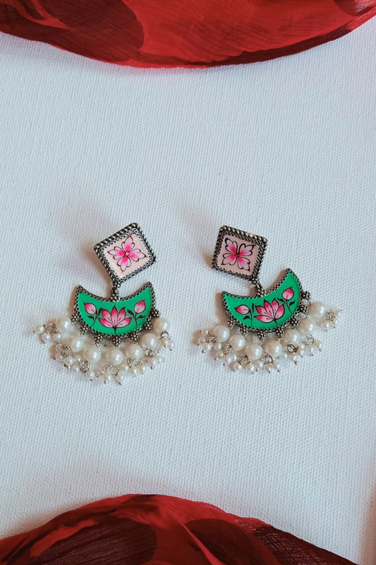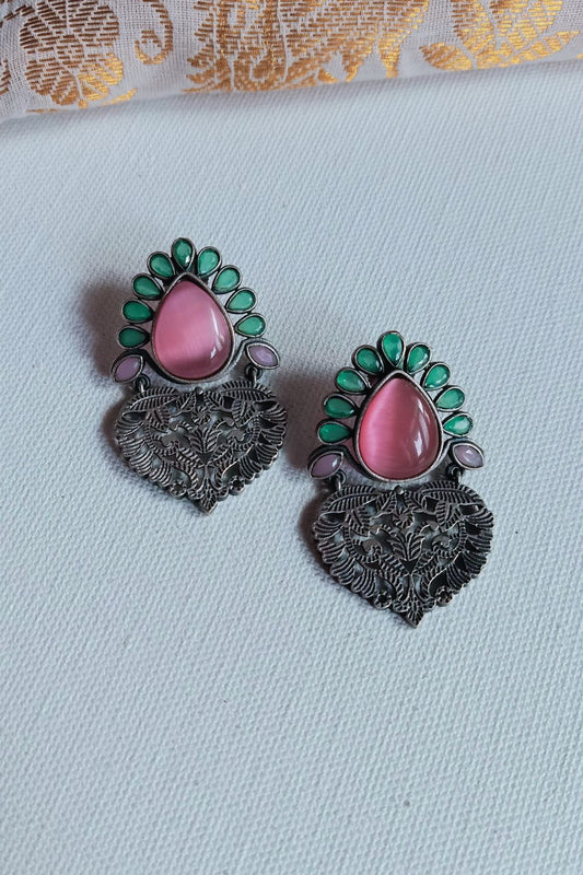 Kusuma (Pink & Mint Green) - Premium Quality Oxidised Danglers