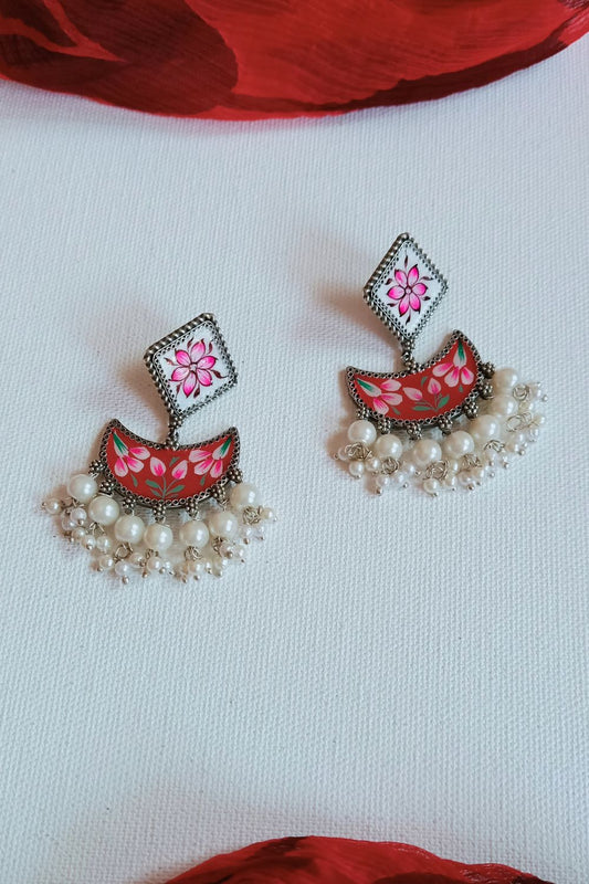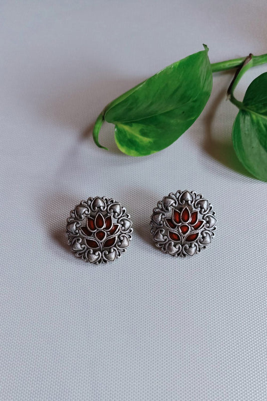 Iraa (Red) - Premium Quality Oxidised Stud (Hand Painted)