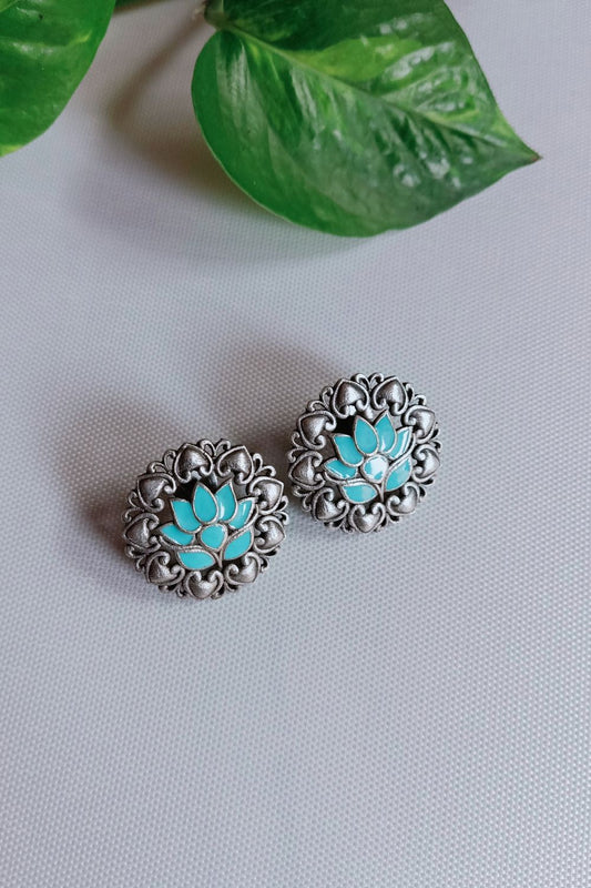 Iraa (Firozi) - Premium Quality Oxidised Stud (Hand Painted)