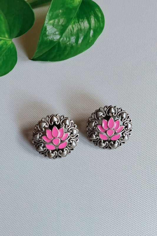 Iraa (Pink) - Premium Quality Oxidised Stud (Hand Painted)