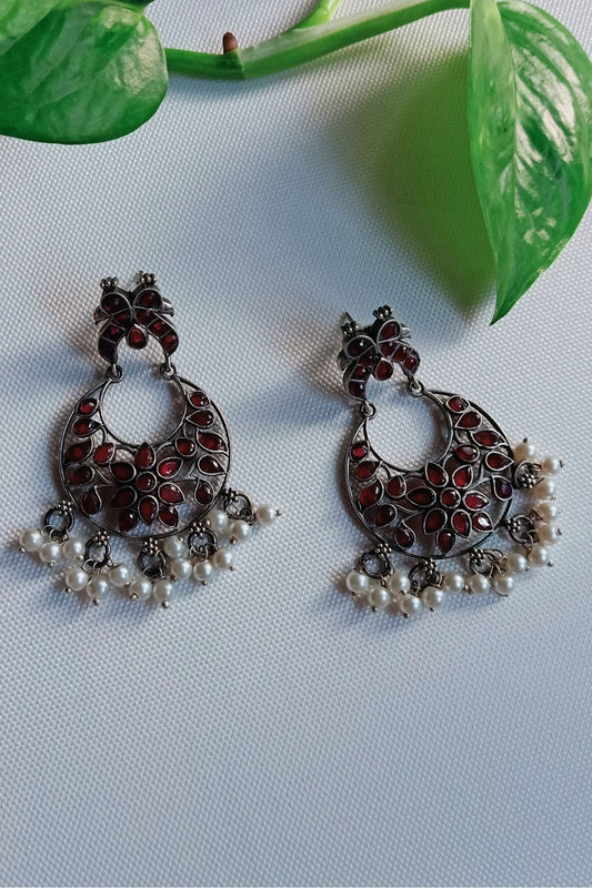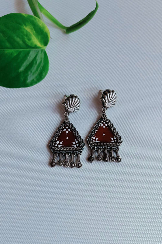 Lipikaa (Maroon & White) - Premium Quality Oxidised Danglers (Hand Painted)