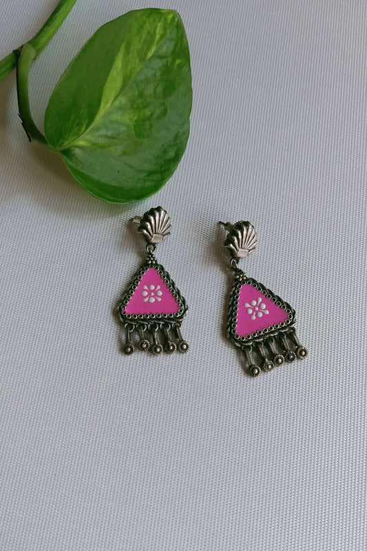 Lipikaa (Pink & White) - Premium Quality Oxidised Danglers (Hand Painted)