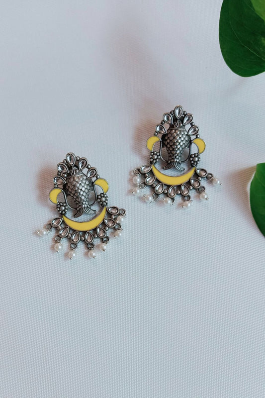 Iraa (Yellow) - Premium Quality Oxidised Stud (Hand Painted)