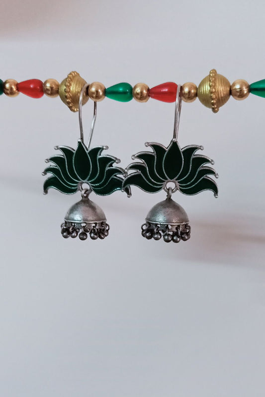 Padmaa (Green) - Premium Quality Oxidised Jhumki (Hand Painted)