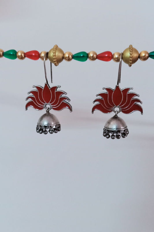 Padmaa (Red) - Premium Quality Oxidised Jhumki (Hand Painted)