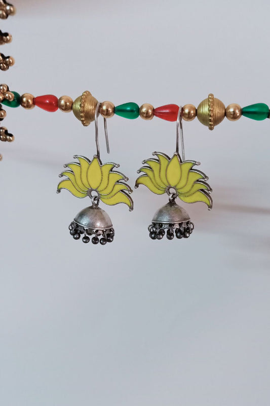 Padmaa (Yellow) - Premium Quality Oxidised Jhumki (Hand Painted)