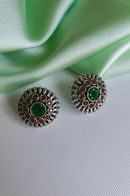 Pavanii (Red & Green) - Premium Quality Oxidised Stud