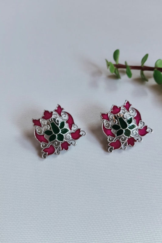 Tulika (Magenta & Green) - Premium Quality Oxidised Studs