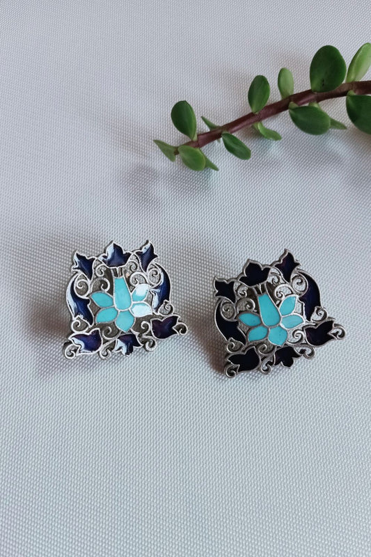 Tulika (Navy Blue & Firozi) - Premium Quality Oxidised Studs