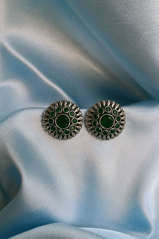 Iraa (Firozi) - Premium Quality Oxidised Stud (Hand Painted)