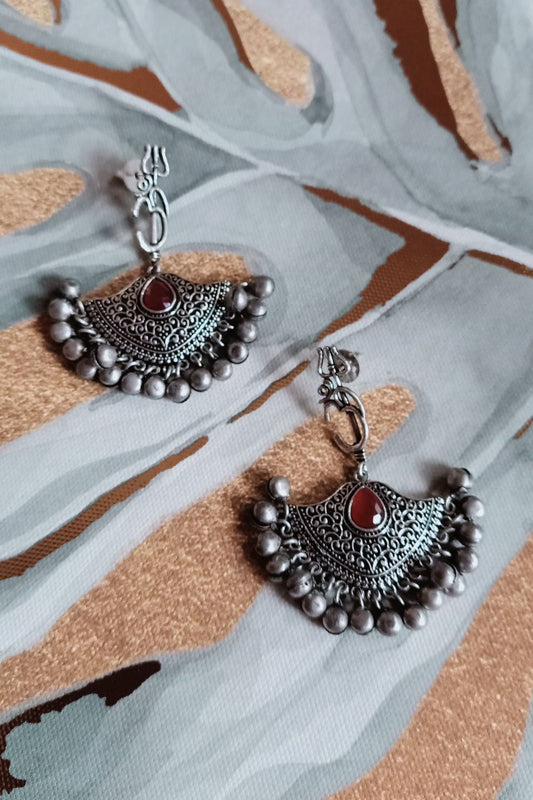Sohni (Red) - Premium Quality Oxidised Jhumki