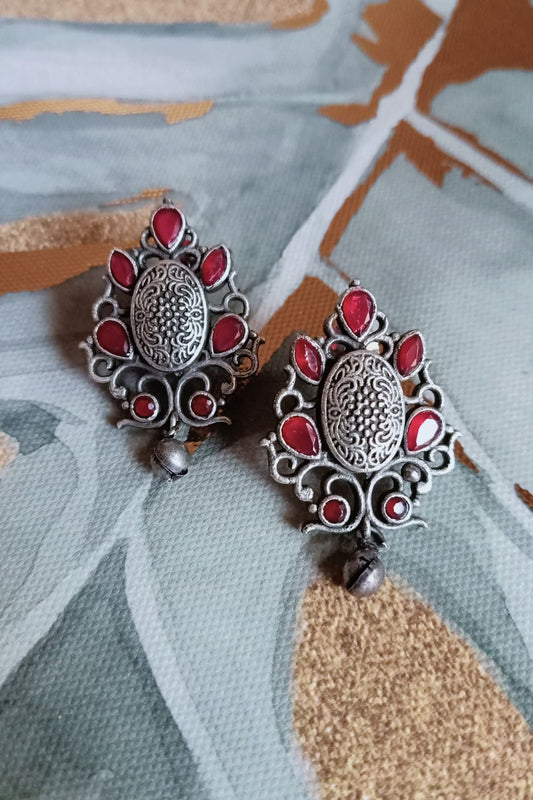 Rhea (Red) - Premium Quality Oxidised Stud